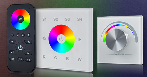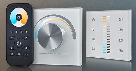 Kompakte, leistungsstarke LED-Controller für weiße LED-Streifen, CCT oder RGB / RGBW Lösungen. Für jede Controller-Lösung gibt es eine Auswahl passender, hochwertiger Fernbedienungen, entweder als klassische Handfernbedienung oder für den Wandeinbau.