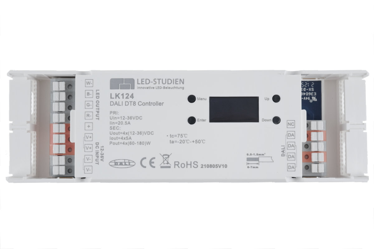 LED-Controller für DALI DT8 Betrieb mit 4 x 4 Ampere Ausgängen.