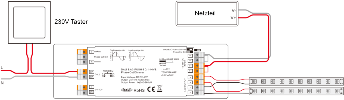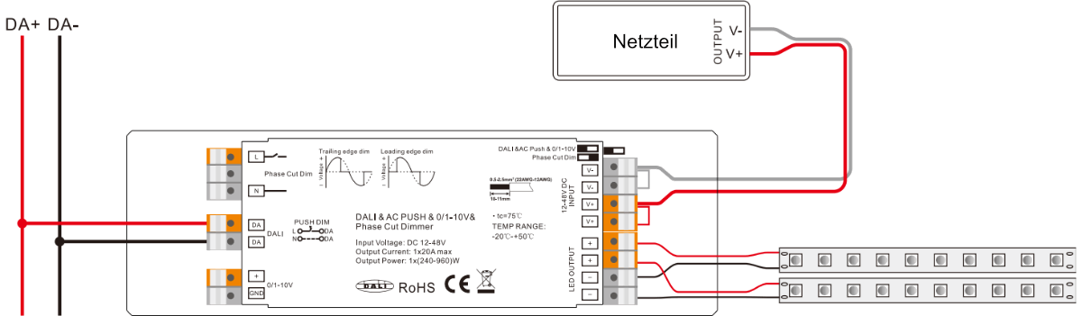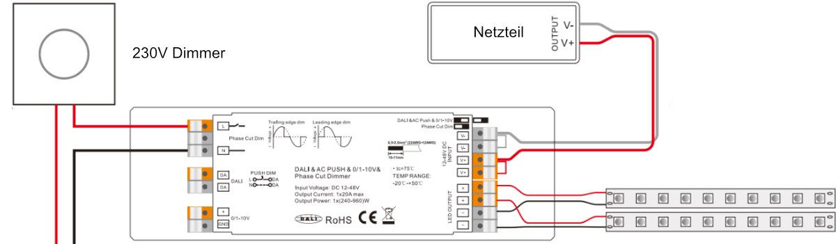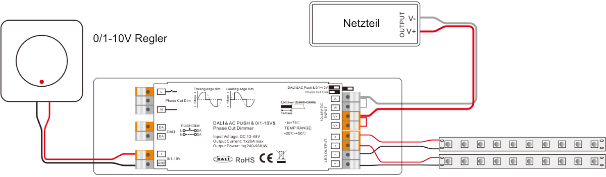 Multi LED-Controller für DALI, 1-10V, PushDim & TRIAC | 2 x 10A