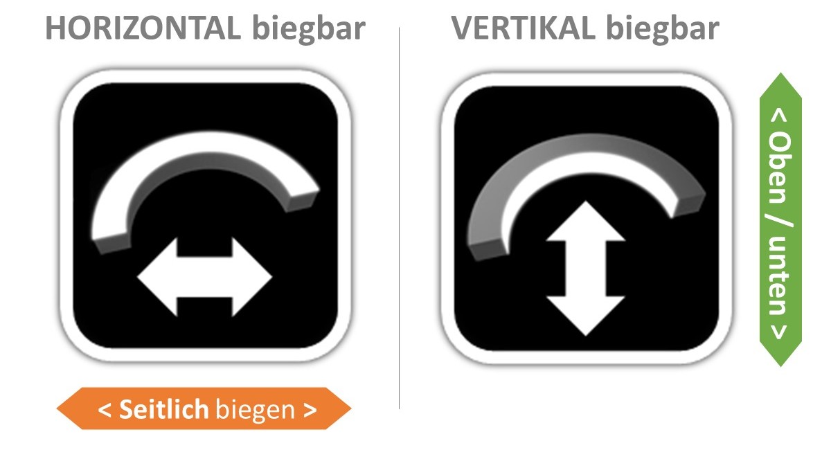 Bei den Bändern gibt es 2 verschiende Orientierungen, in denen sie sich biegen lassen:
