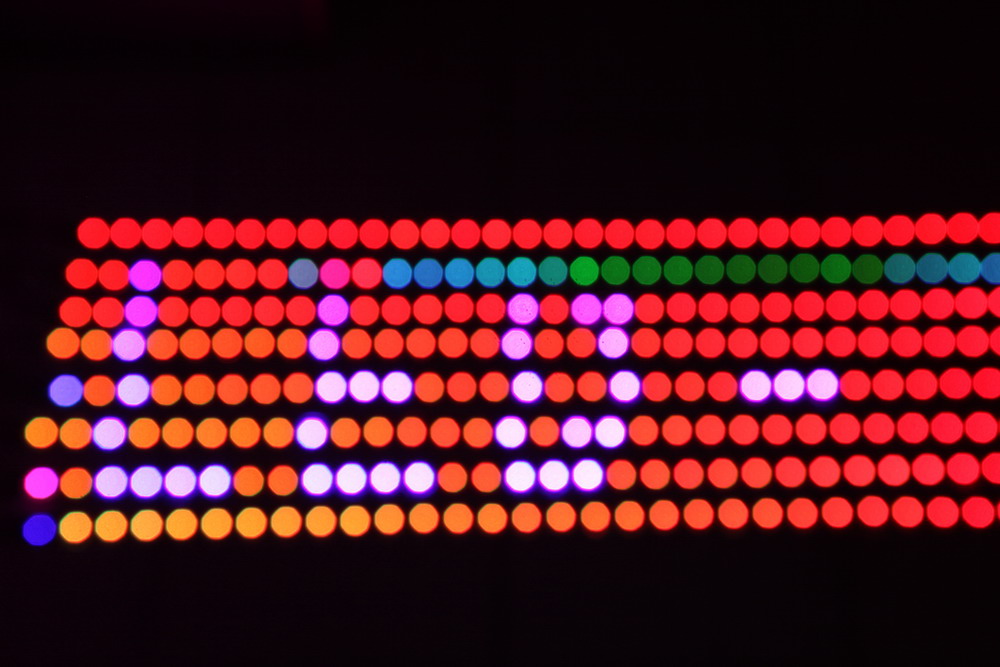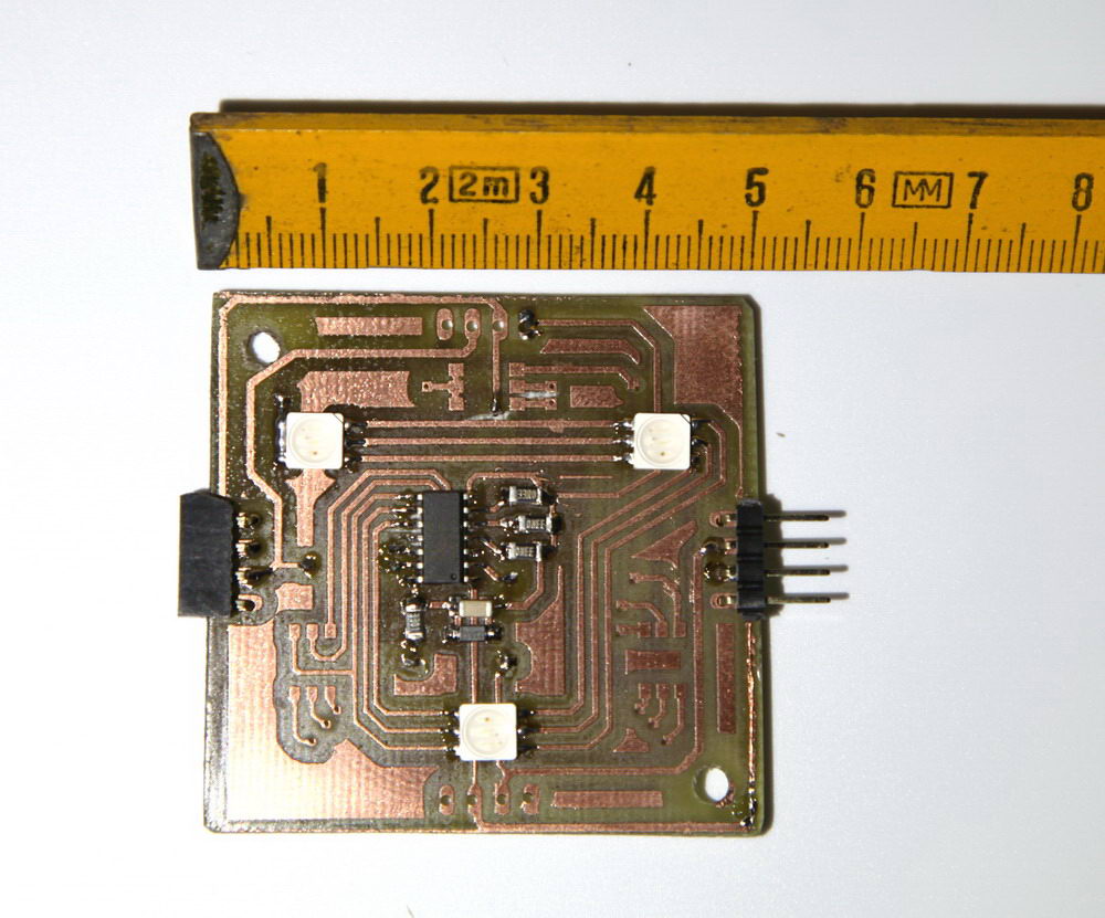 Die Beispielbilder zeigen den möglichen Aufbau einer Pixel-Platine sowie die Verkettung der Pixel. In einer größeren Matrix lassen sich dann beliebige Schriften oder Effekte darstellen.
