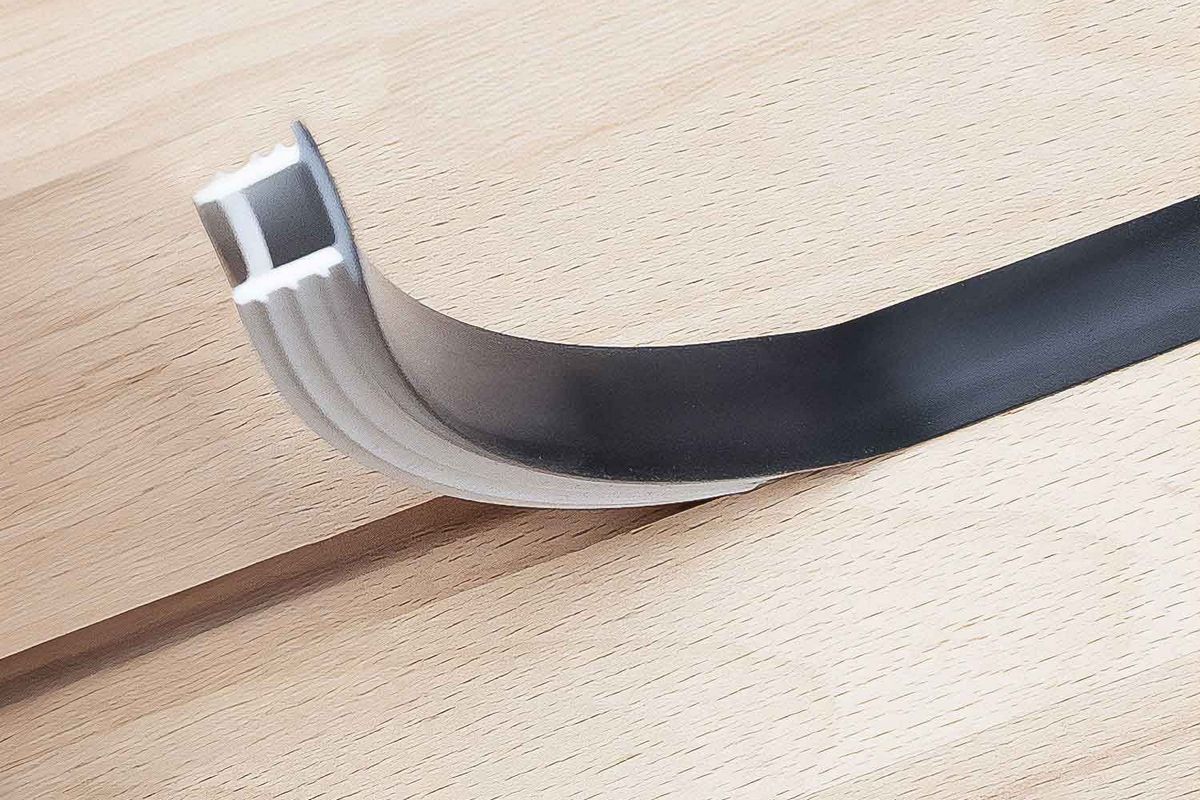 The flexible silicone insert covers are ideal if LED lighting is to be integrated into grooves, e.g. in an acoustic panel. The LED strip is glued into the groove at the bottom (aluminum profiles should be used from 5W/m) and then the silicone insert cover is pressed into the groove from above.