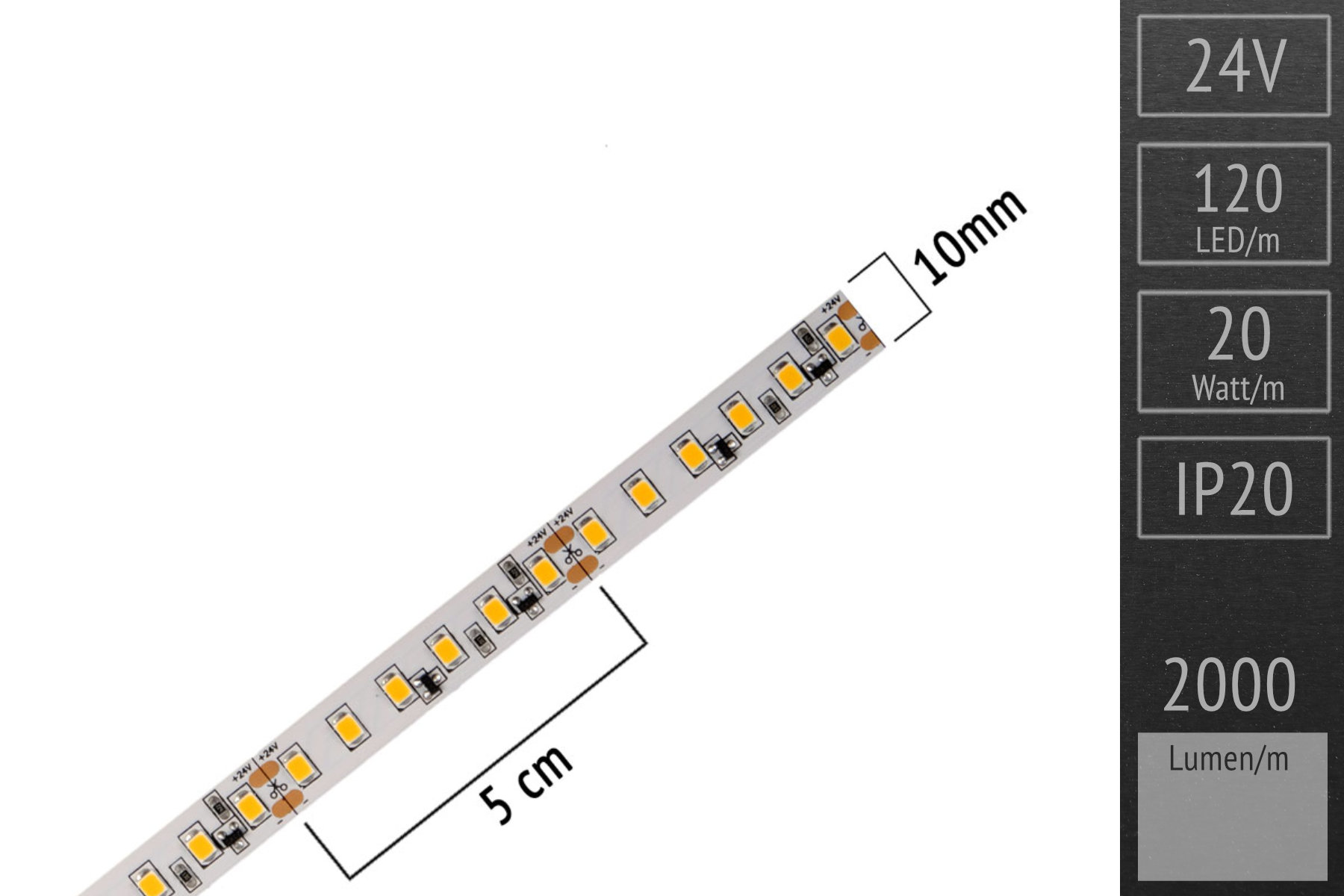 LED Strip 2835 - 120LEDs/m - 2.000lm/m - 3.000K warm white - IP20 5m roll