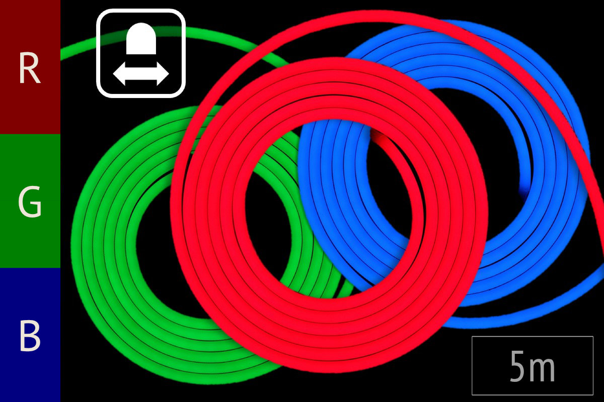 RGB Neon Flex Band - 17W/m - 10mm wide - HORIZONTAL bendable - 5m reel