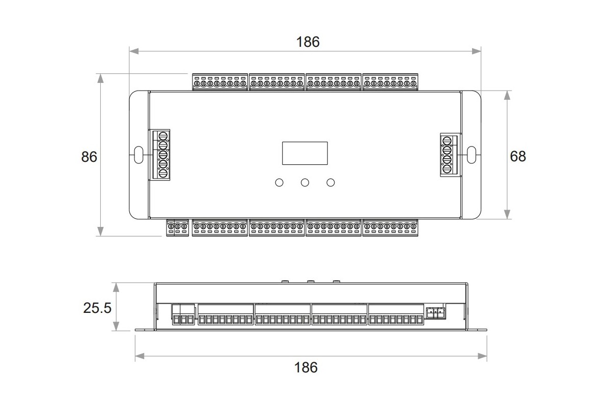 | Output ports | 32 x 5-24VDC, 1A step illumination 2 x SPI pixel for running light |