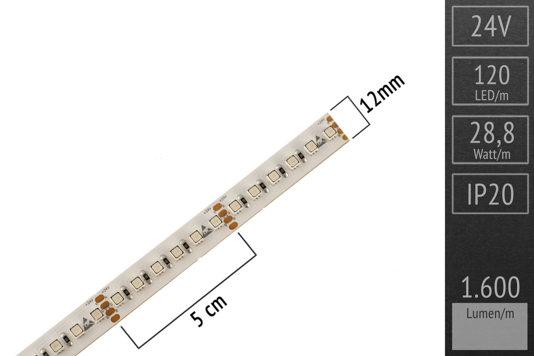 Eigenschaften "RGB HighEnd LED-Band: 120 LEDs/m - 1.600lm/m - 28,8 W/m"