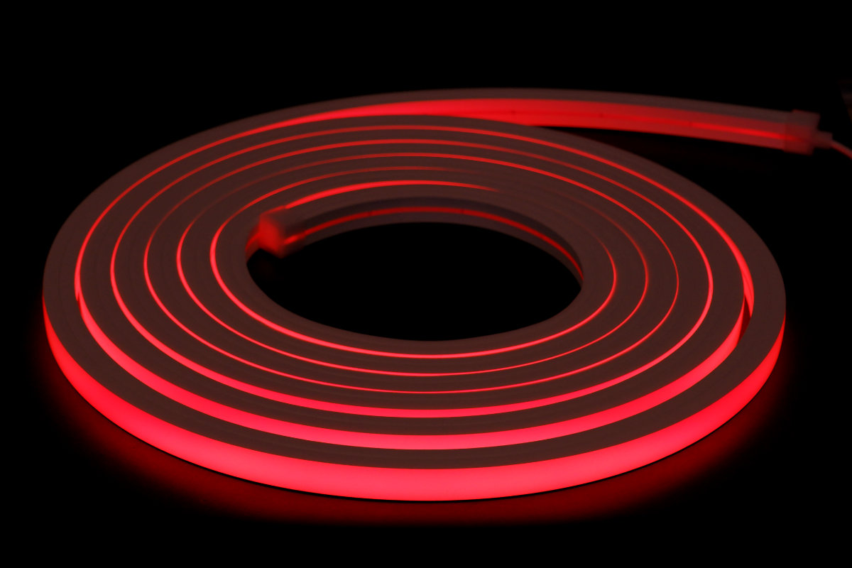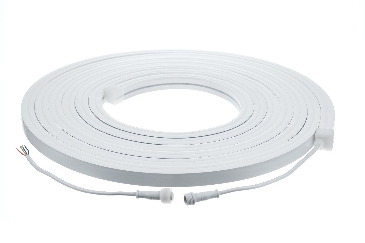 Die RGBW NEON FLEX Bänder sind absolut gleichmäßige Lichtbänder, bei denen keine Einzel-LEDs sichtbar sind. Erreicht wird dies durch eine milchig-opale Silikonhülle, die das LED-Band umschließt. Dennoch sind die NEON FLEX Bänder hoch flexibel und auch aufgrund der geringen Breite von nur 16mm sehr gut biegbar. Die Silikonhülle gewährt zudem eine Wasserfestigkeit nach IP65.