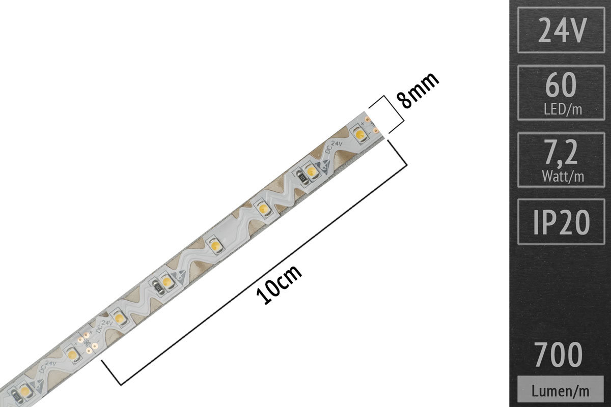 - 5m-Rolle IP20 ohne Wasserschutz, inkl. 10cm Anschlusskabel