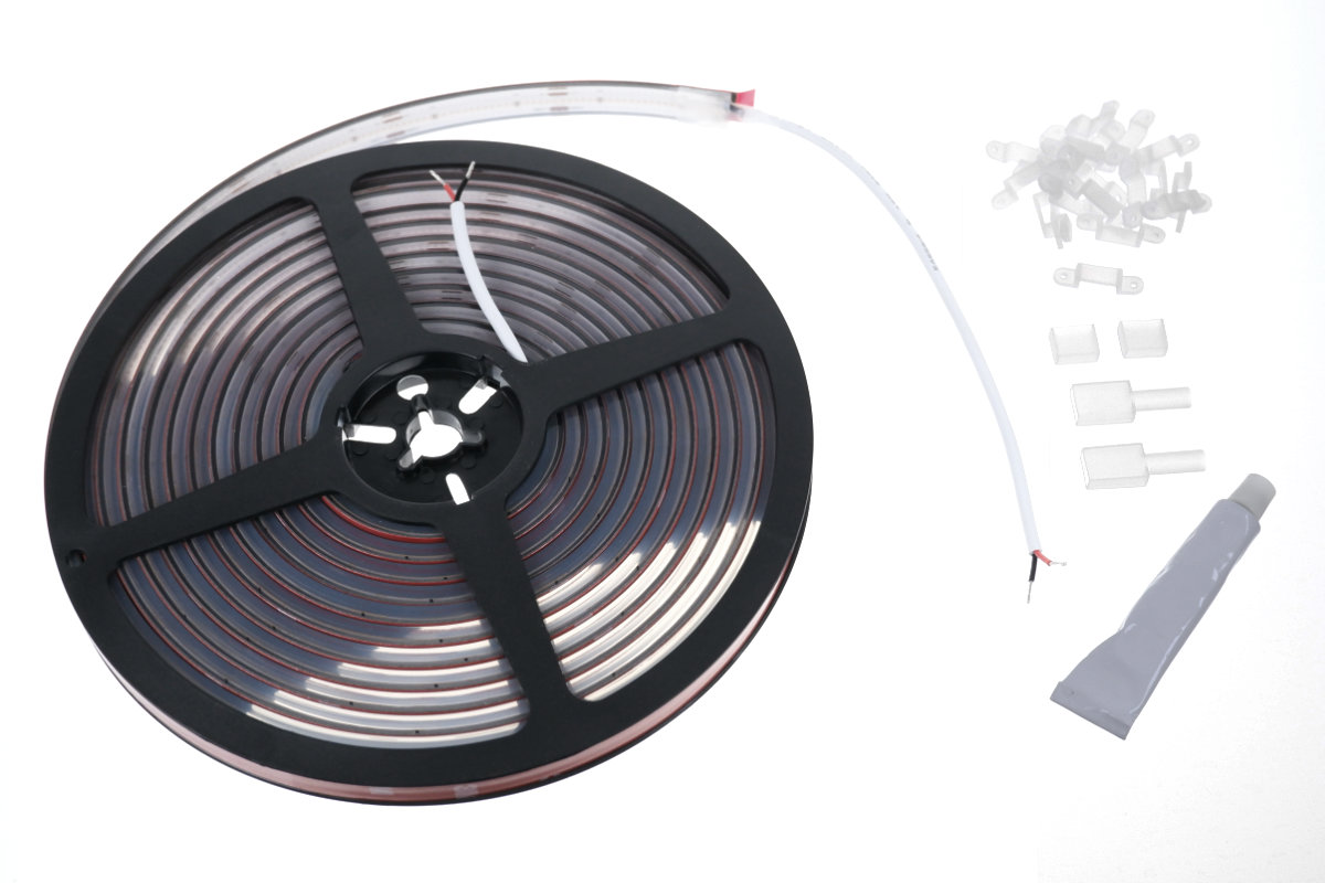 - 5m-Rolle IP68 Wasserschutz im Silikonverguss, inkl. 20cm Anschlusskabel beidseitig