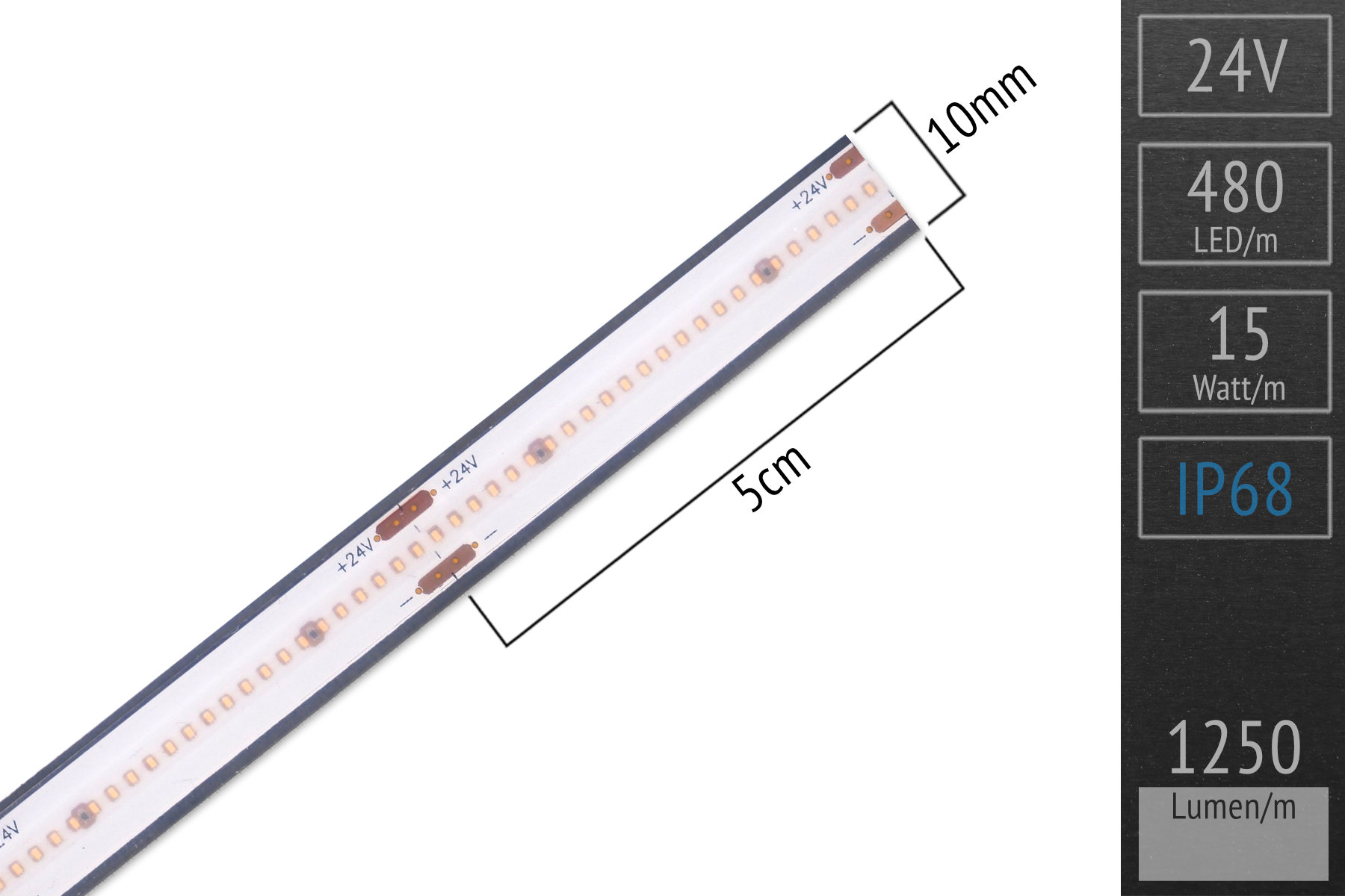 - LED Typ: COB - 480 LED/m