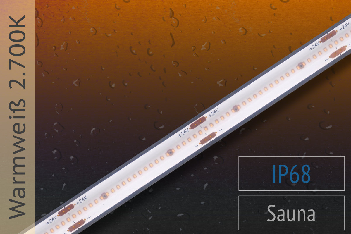 Durch den IP68-Schutz (Silikonverguss) ist es auch in Dampfbädern oder sogar Unterwasser, z.B. im Pool, verwendbar.