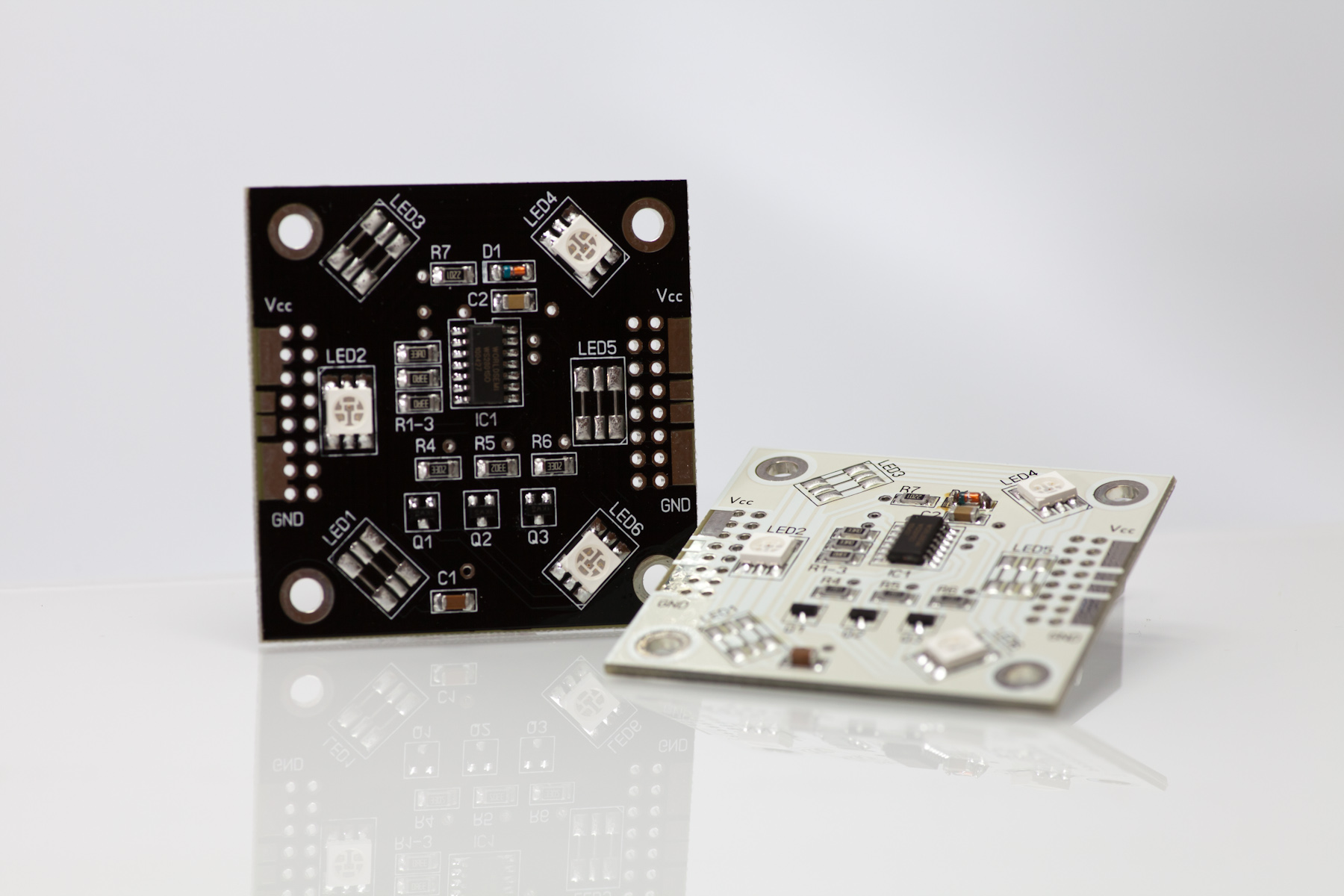 Die Platine ist mit 3 PLCC6-LEDs bestückt und wird mit 12V betrieben. Der Umbau auf 6 LEDs und 24V ist möglich. Die Platine ist in weiß oder schwarz erhältlich.