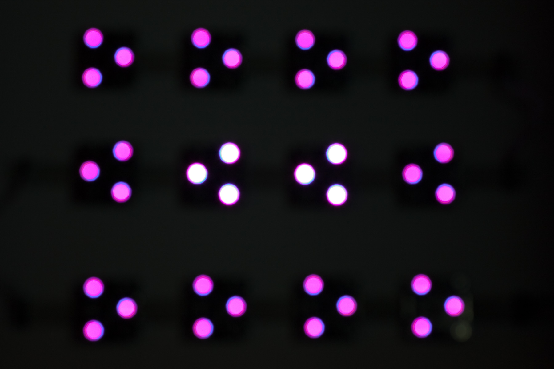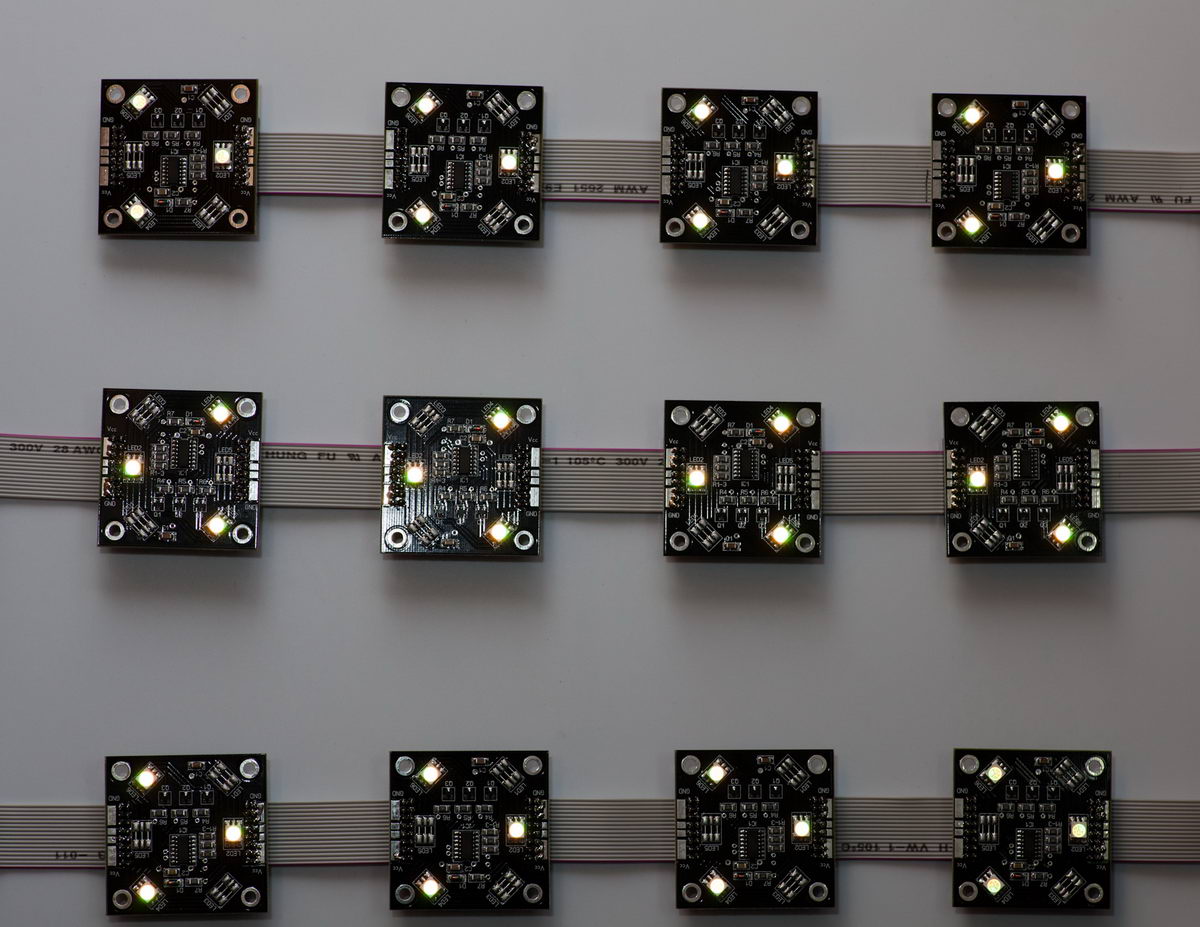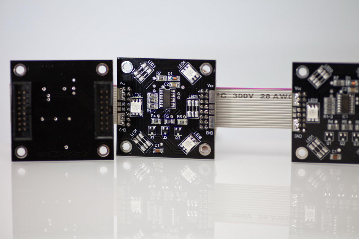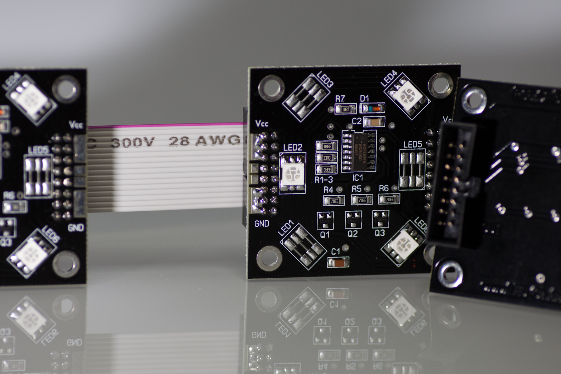 Diese neue Version der Pixel-Platine ist schon mit Wannensteckern versehen und kommt mit einem Flachband-Kabel für einen Pixel-Abstand von 10cm oder weniger. Sie müssen nur noch Ihre Matrix zusammenstecken.