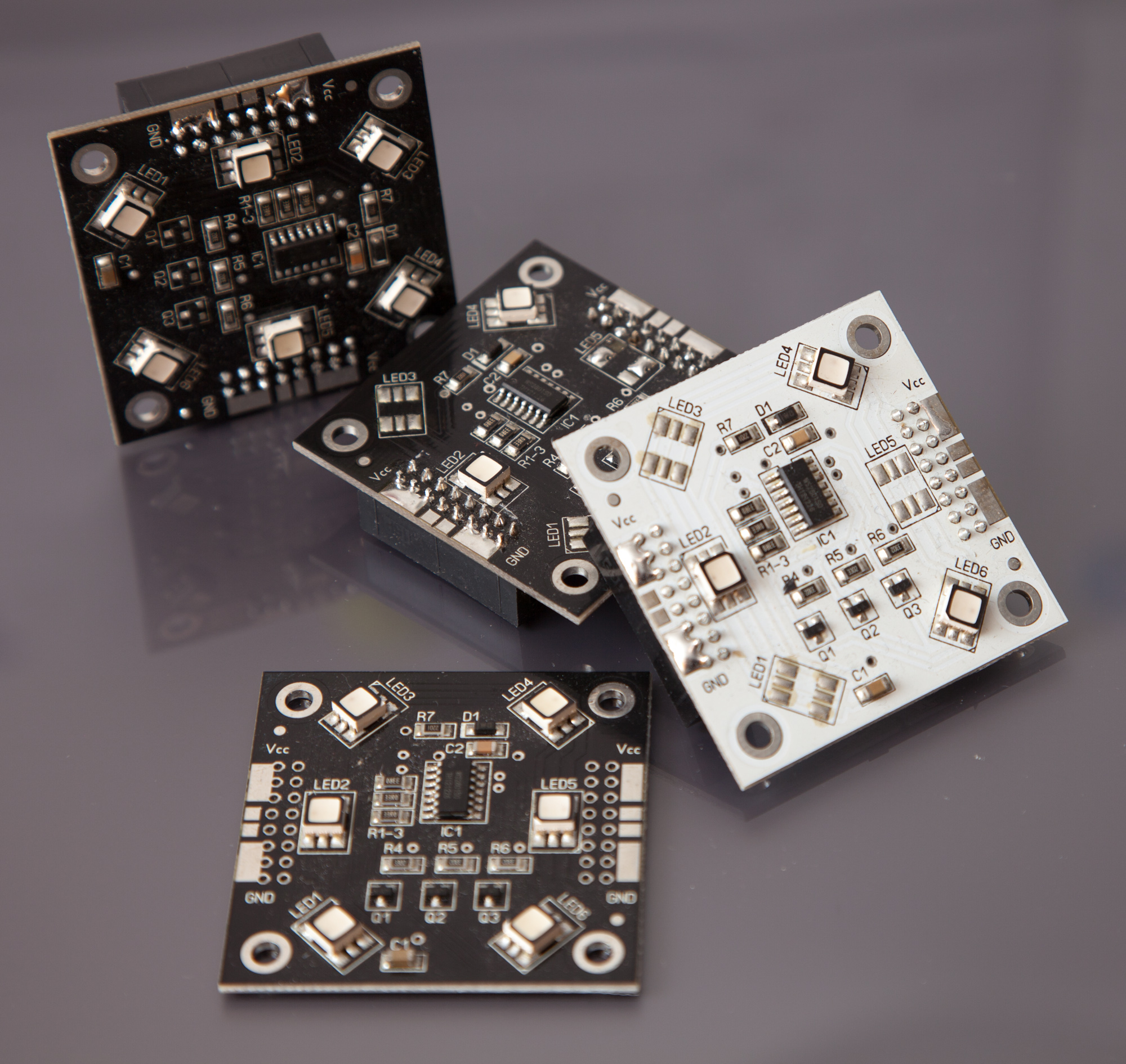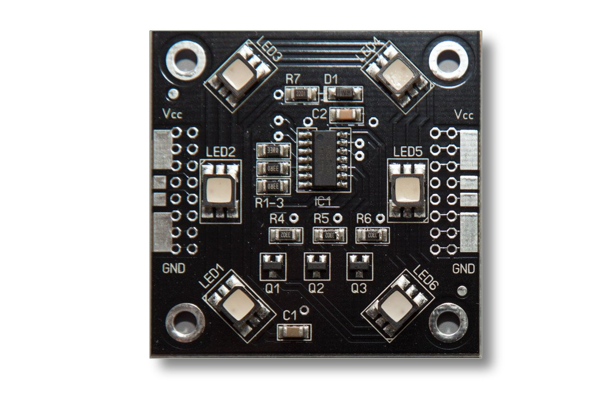 Die Platine ist mit 6 PLCC6-LEDs bestückt und wird mit 24V betrieben. Die Platine ist in schwarz erhältlich.