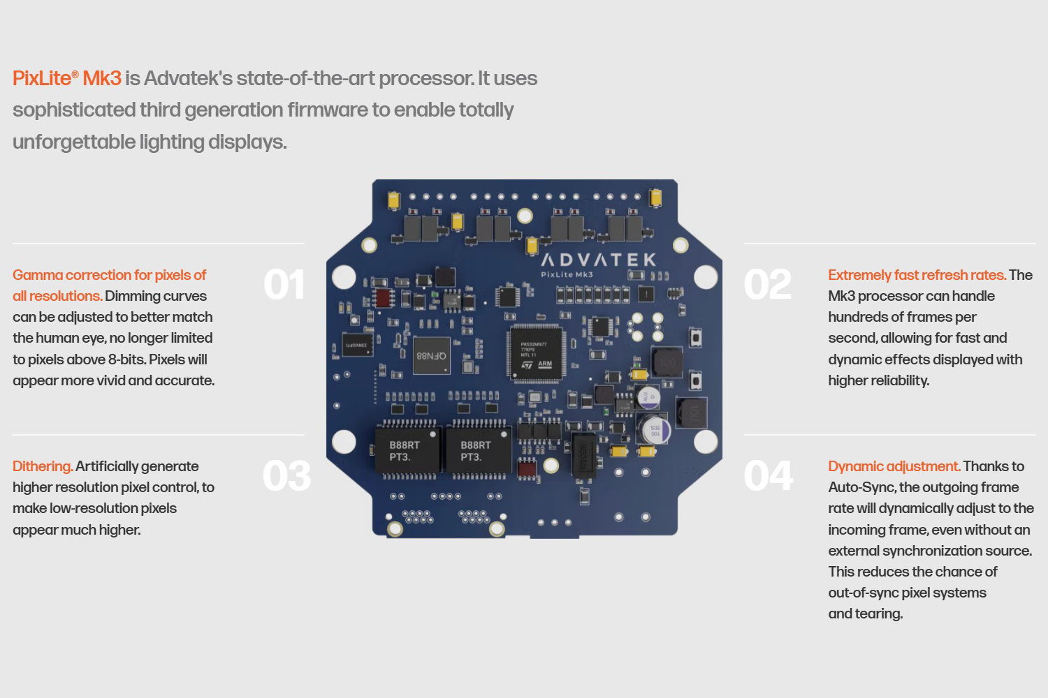 Der Hersteller ADVATEK hat sich auf die Entwicklung hochperformanter Pixel-LED-Controller fokussiert und die Controller von ADVATEK bieten daher eine Reihe interessanter Features und Vorteile.