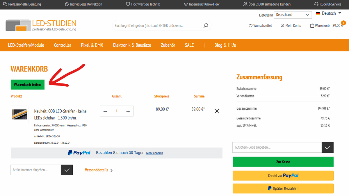 Wenn Sie uns Ihren Warenkorb zur Prüfung zusenden möchten, nutzen Sie hierfür gern die "Warebkorb teilen" Funktion. Es gibt hierfür einen Button direkt über Ihrem Warenkorb.