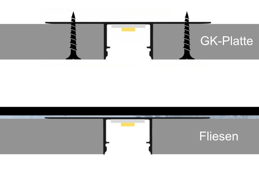 Das Profil wird gemeinsam mit den Gipskarton-Platten verbaut. Für einen nachträglichen Einbau wählen Sie bitte Einputz- oder Einsatzprofile.