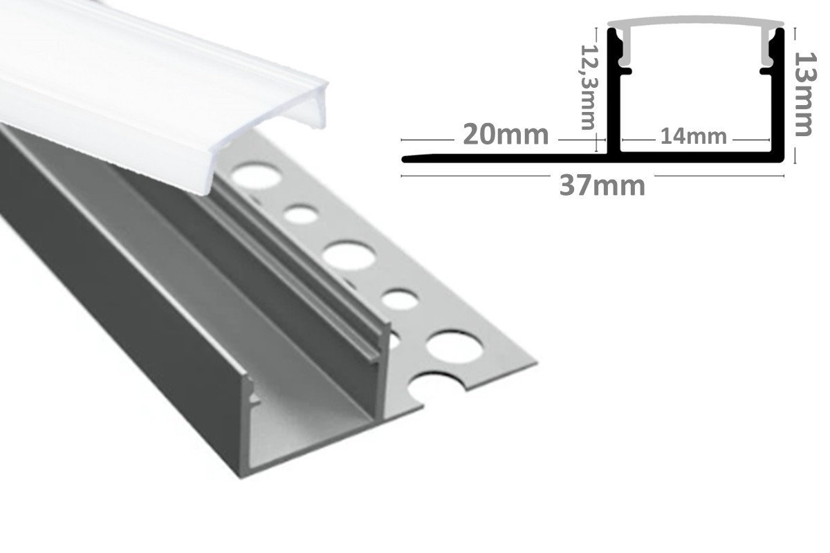 Trockenbauprofil zum Einsatz am Rand von Standard-Gipskarton-Platten mit 12mm Stärke.