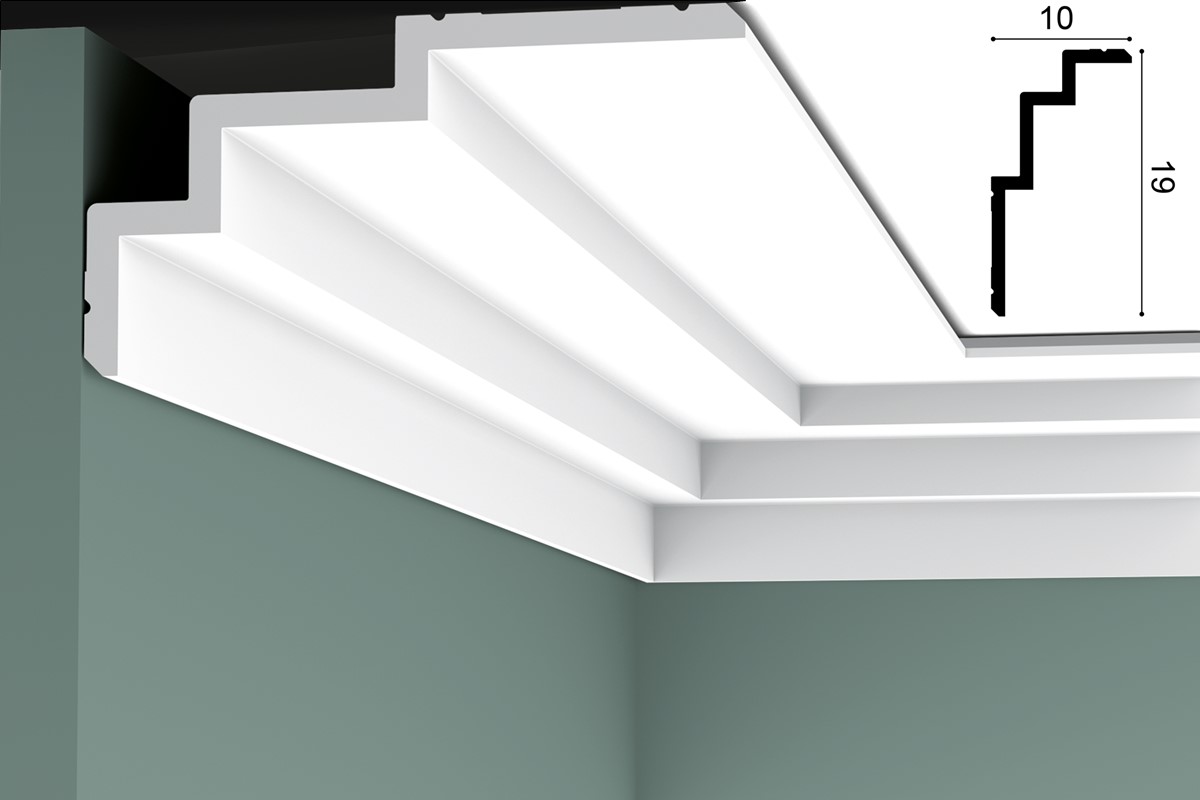 Ein straffes und modernes Profil in der Steps-Serie. In Kombination mit indirekter Beleuchtung ergeben sich klare, ästhetische Licht/Schatten-Linien. Ein abgeschrägter Winkel an Ober- und Unterseite sorgt außerdem für eine subtile Schattenfuge. Entworfen von Orio Tonini.